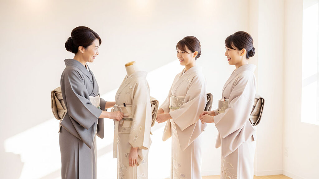 無理なご案内は一切ありません。まずは初等科で着付けの楽しさを体験していただき、「もっと学びたい」と思ってくださった方にだけ、次のステップをご案内しています。