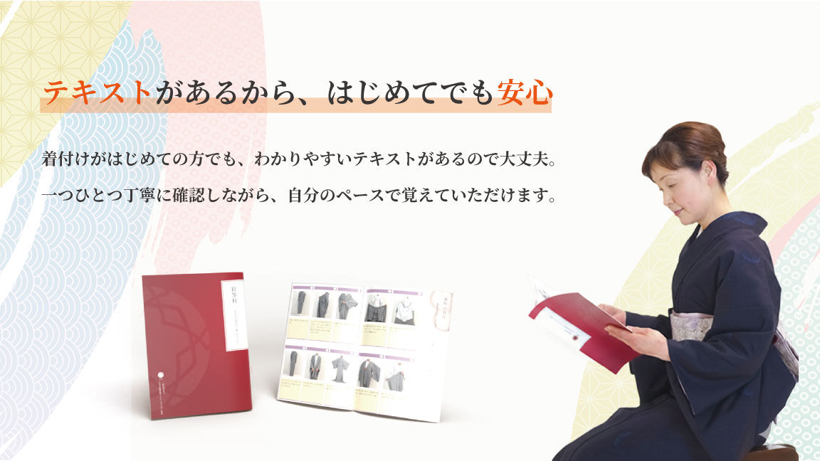 格調高いきものの着付けや帯結びの技術もマスターでき、TPOやコーディネートなどの「和装」への理解も一層深まります。