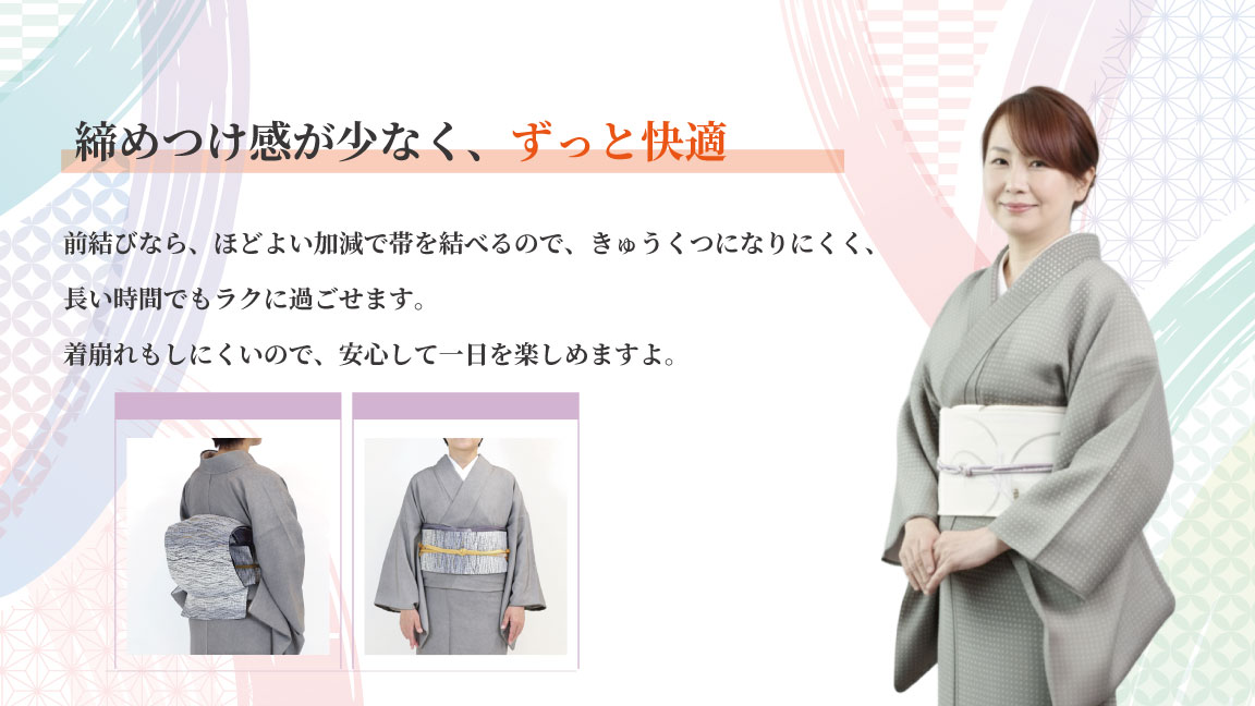 帯の結び方や力加減も調整しやすく、自分で素敵な結び方ができるととても好評です。