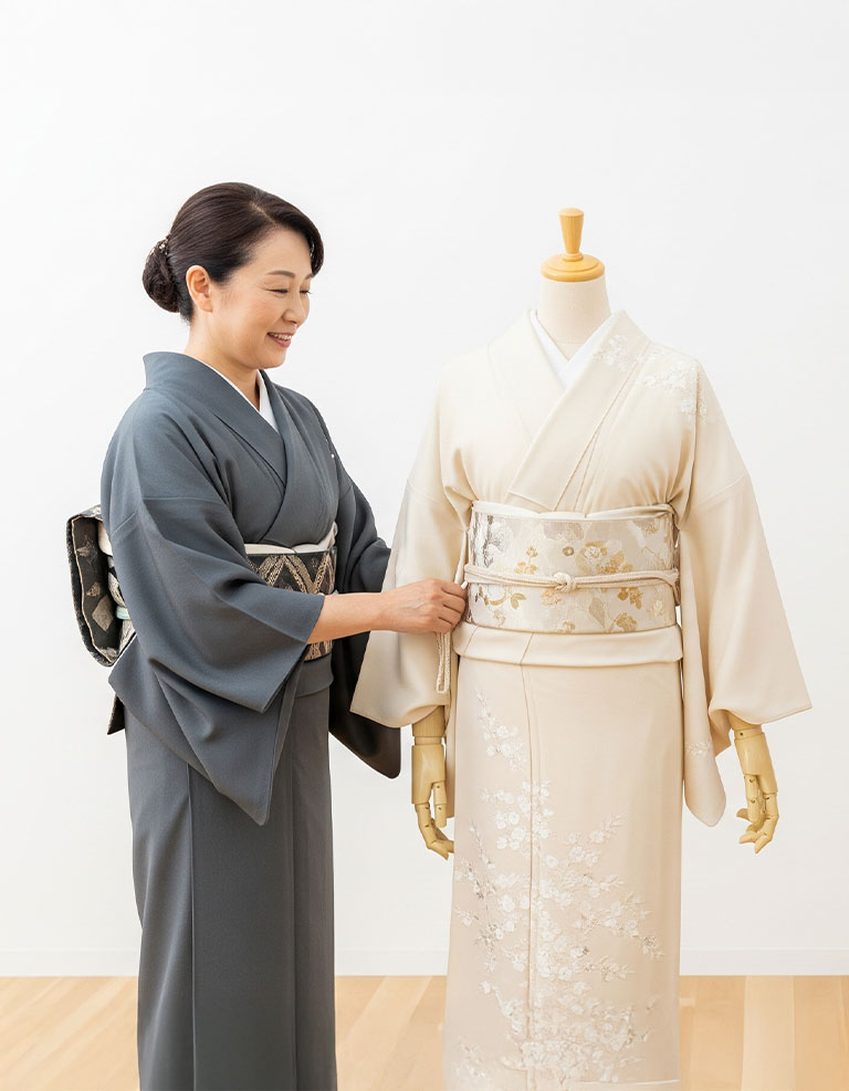 落ち着いた雰囲気の中で、ゆっくりと着付けの基礎を身につけていただけるグループレッスンです。